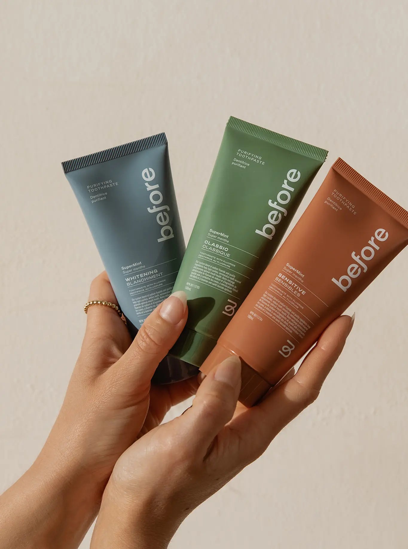 Before Toothpastes are silky smooth on your teeth and gums for that spa-like feel.