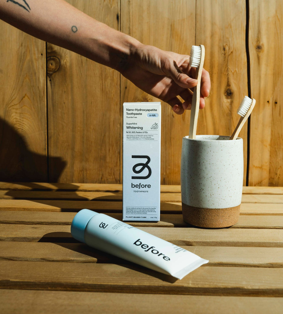 Before was born out of a simple realization: finding a toothpaste we truly wanted to use, not just needed to use, was impossible. Something clean, well branded, tastes incredible, worked like the big brands, and was environmentally friendly.