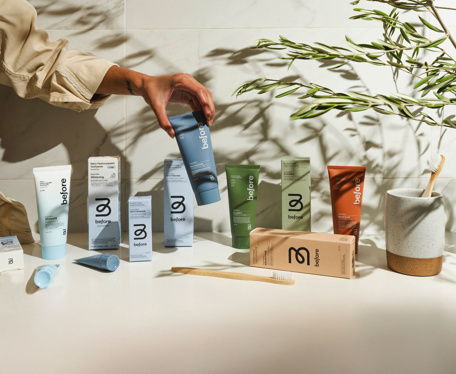 Before was born out of a simple realization: finding a toothpaste we truly wanted to use, not just needed to use, was impossible. Something clean, well branded, tastes incredible, worked like the big brands, and was environmentally friendly.