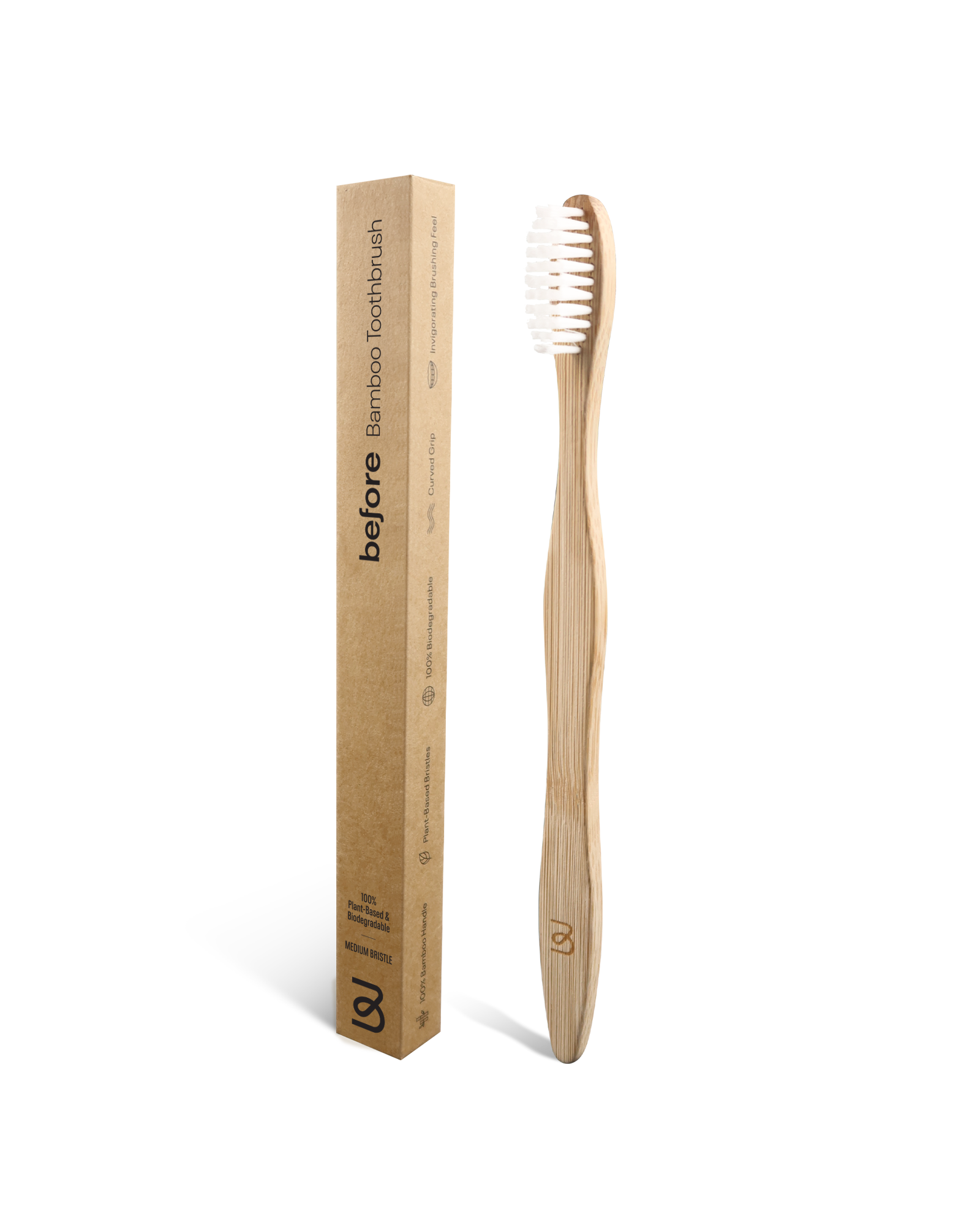 Now that’s a plush brush! Our bamboo toothbrush is designed to feel great in the hand and even better on your teeth, with medium/soft plant-based bristles that are tough on stains and plush on your gums. With a curved grip and 4 rows of bristles, the Before Toothbrush makes fighting plaque and gingivitis a breeze with your favourite Before Toothpaste.